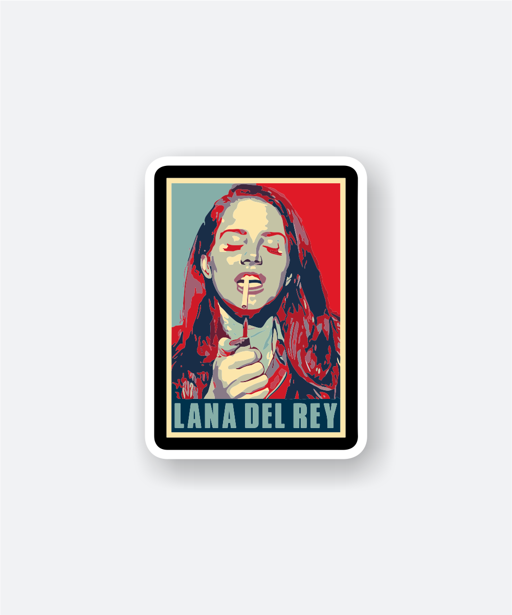This Lana Del Rey vinyl sticker stands out because of its striking poster-style portrait with strong colors and a vintage feel. The bold color blocks and Lana’s relaxed expression create a cool, artistic vibe that fits well with music lovers and style-conscious youth.
